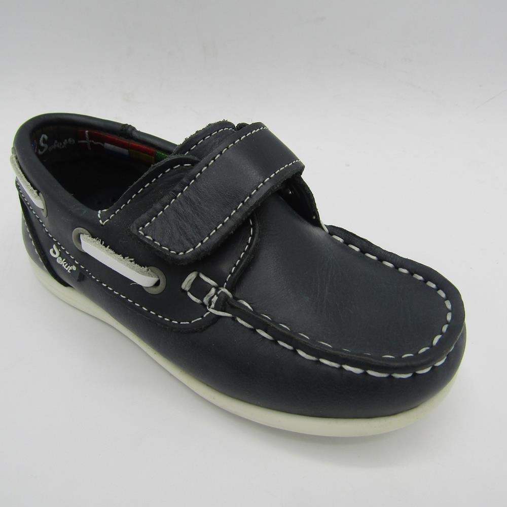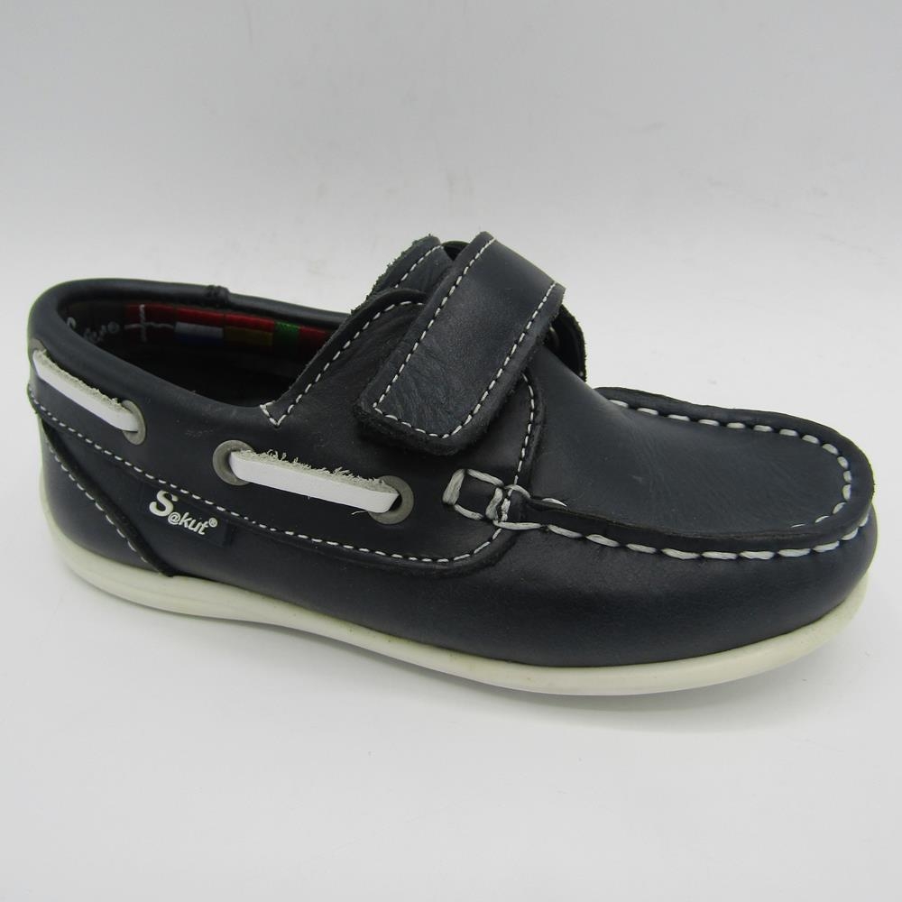 Náuticos para niños en azul marino pespunteado contraste blanco.