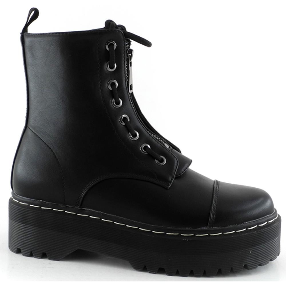 Bota militar para mujer de la marca D´Ángela, realizada en sintético con forro textil. Cierre mediante cremallera interior y vira con pespuntes en contraste. Detalle de cremallera y cordón en el empeine a modo de adorno.