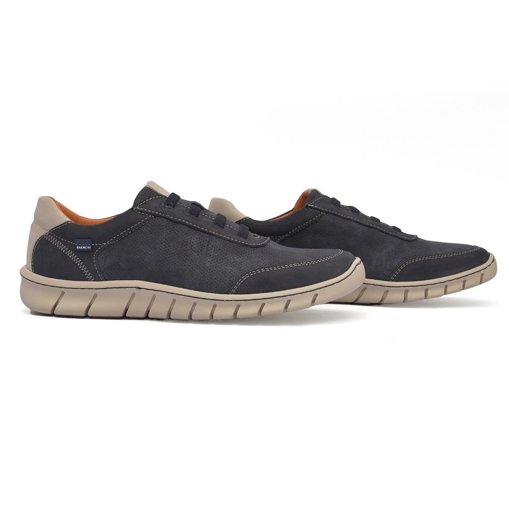 CAR9000 Zapatillas casual de hombre, piel de vacuno, cierre de cordones elásticos y suela de caucho. BAERCHI "Hecho en España".