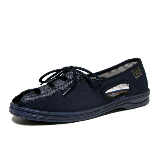 Zapatilla especial de Doctor Cutillas, con  apertura total debido a su cordonera en el empeine, lo que la hace apropiada para personas con problemas de empeine ancho, pies hinchados y delicados