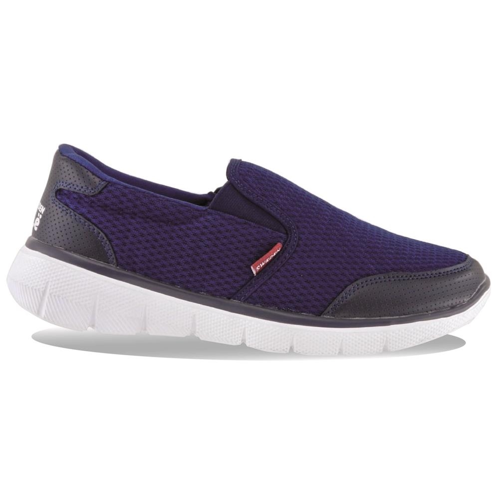 Zapato cómodo de marcha deportiva. Fabricado en textil con suela de goma flexible y ligera. Elásticos en los laterales. Plantilla Memory Sponge. Color marino Confort para tus pies.