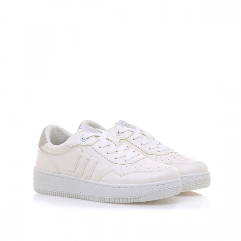 Zapatillas blancas Gravity de mujer, marca Mustang. Destacan por su diseño monocromático y su detalle gris en el talón. Cuenta con un cierre de cordones también blanco y la M del logo en sus laterales. Si buscas un básico para el día a día, Gravity de Mustang es para ti.