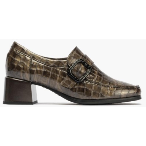 Zapato abotinado de mujer, realizado en piel charol coco de primera calidad, en color humo. Empeine realizado en piel grabada atravesado por una tira con elegante hebilla. Forro interior en textil de suave y plantilla extraíble. Fabricado en España por la marca Pitillos. Elásticos en los laterales para facilitar el calce. Características: Termal Super Absorbent. Forro y plantilla transpirable, absorbe el sudor combatiendo la aparición del olor. Además de proporcionar una agradable sensación de confort y bienestar. Elegante modelo para un uso diario, cómodo y versátil. Medidas: Tacón 4.5 cm