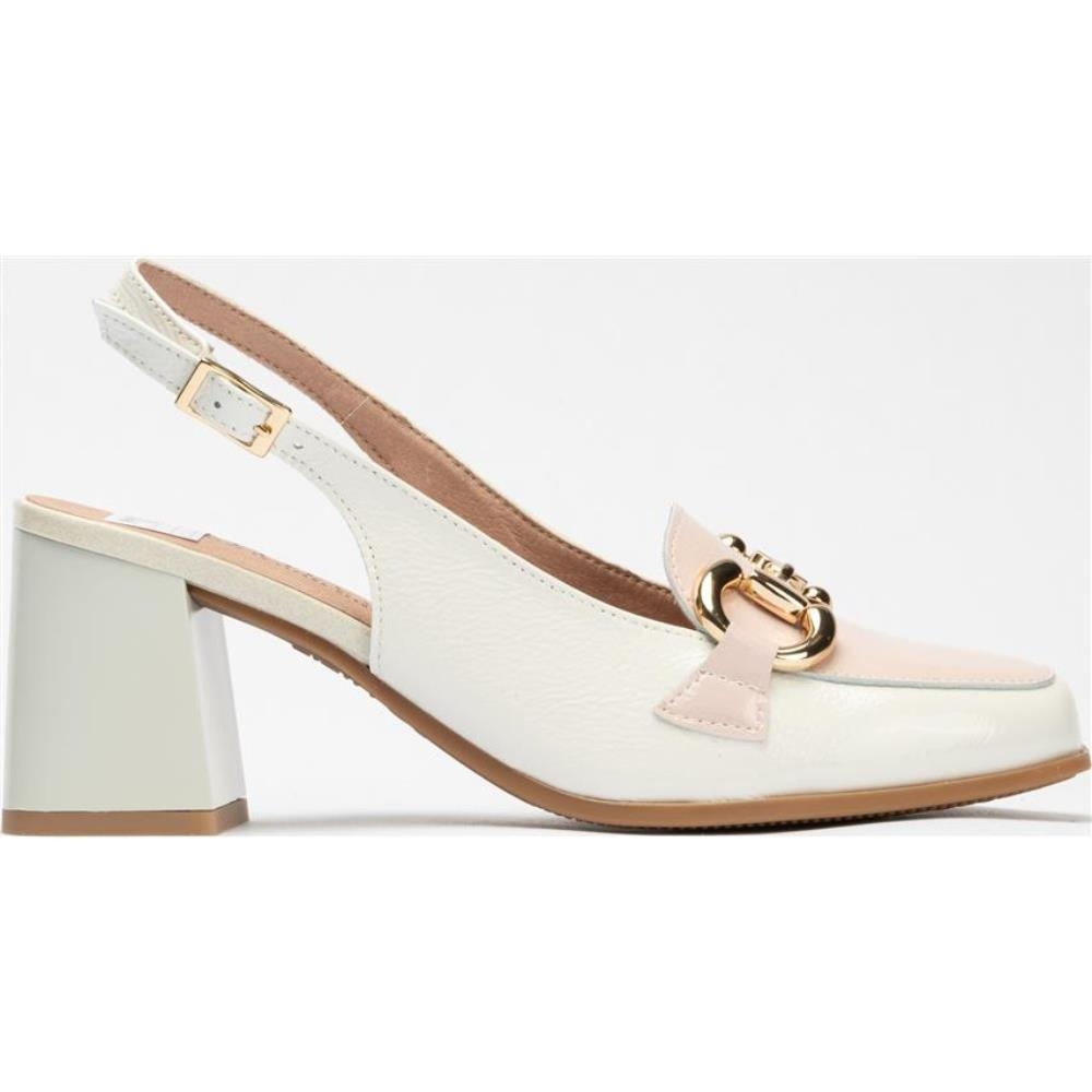 Zapato destalonado con tacón para mujer, de la marca Pitillos en color piedra. Fabricado en piel de primera calidad y alta resistencia.