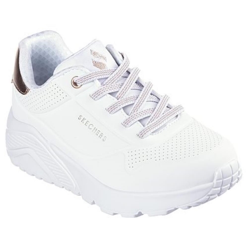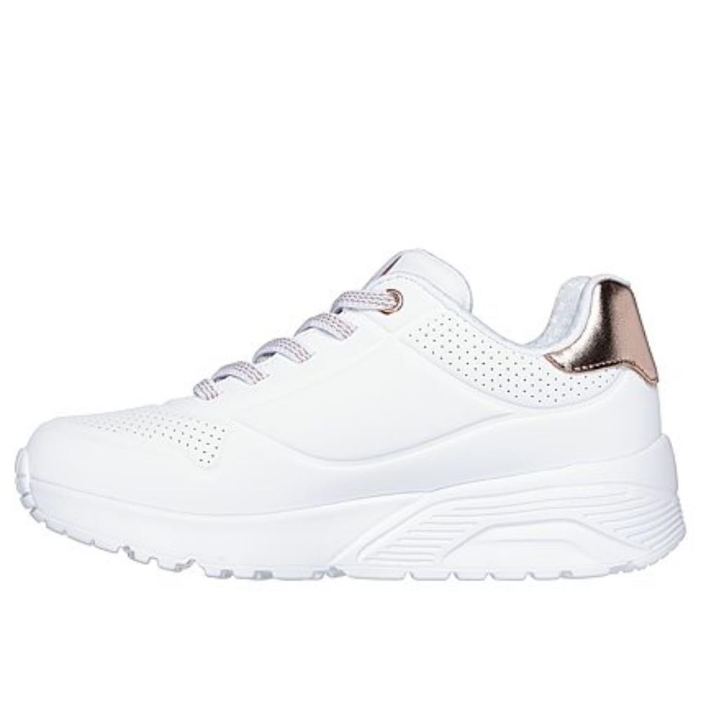 Sube el nivel de tus zapatillas con la comodidad y la amortiguación de Skechers Street™ Uno Lite. Este modelo moderno con cordones elásticos presenta una parte superior de sintética de durabuck con ribete metalizado, cierre Adaptive Closure de Skechers, plantilla Skechers Air-Cooled Memory Foam® y media suela con amortiguación con cuña de plataforma.
