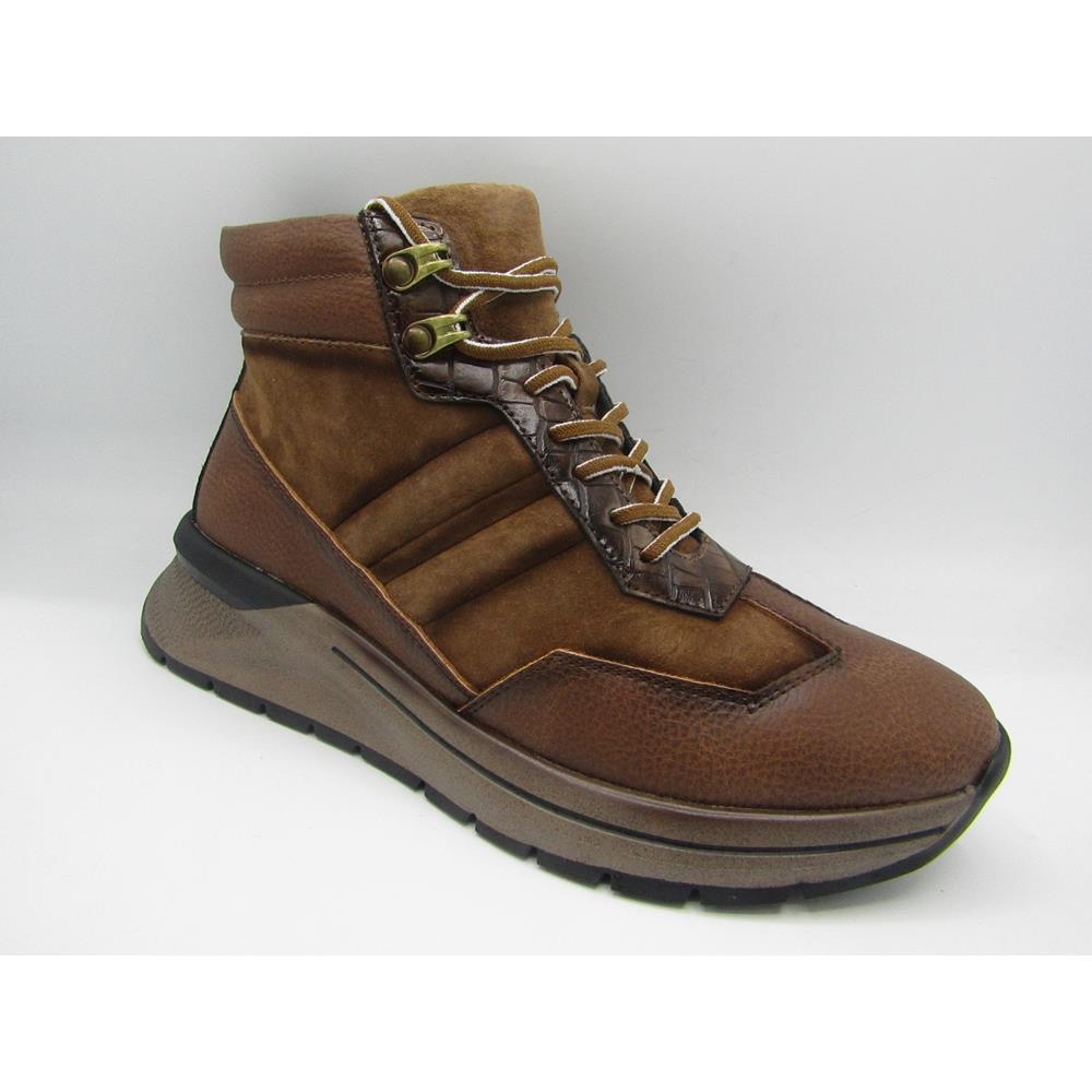 Botin de la marca Treintas, fabricada en piel en combinación con serraje, cierre de cremallera con ajuste de cordones y piso de goma extralight antideslizante.