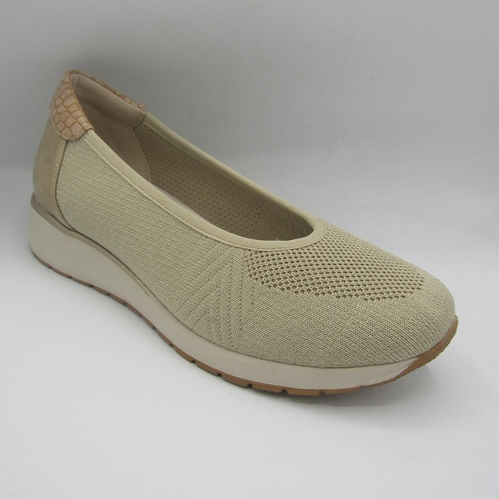Zapato bailarina con refurezo textil  en piel en talón de la marca Treintas.