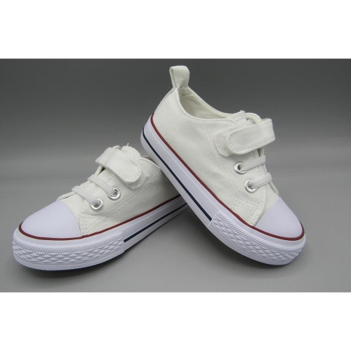 Zapatillas estilo basquet de bebé en lona color blanco.