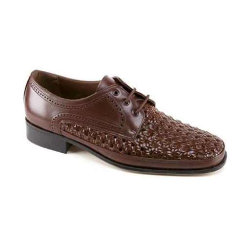 Todo un clásico. Zapato de Baerchi, realizado con tiras trenzadas de cuero. Anchos, cómodos, y muy fáciles de domar, gracias al trenzado. Abrochado con cordones. Color cuero.