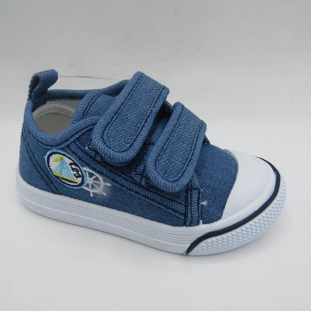 Zapatilla de loneta jeans con un cómodo cierre velcro y puntera reforzada
