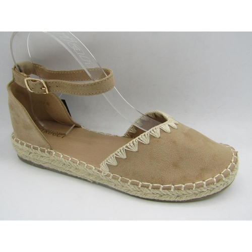 Sandalias de cáñamo de planta baja con bordado y cierre hebilla